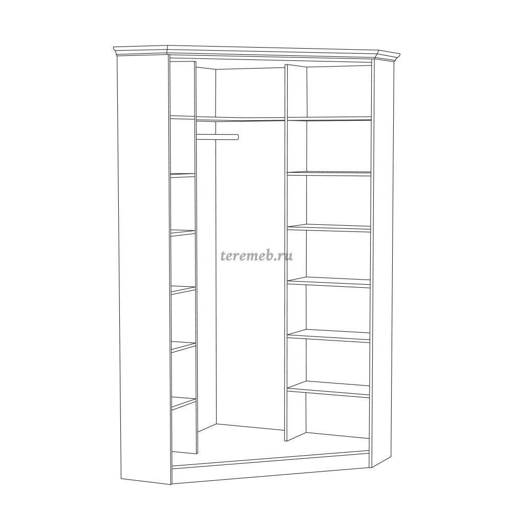 Благодаря шикарному притягательному внешнему виду шкаф угловой для одежды "Ливерпуль 13.124.01" отлично впишется в мебельный ансамбль спальни, прекрасно дополнив собой стилистику остальных предметов.