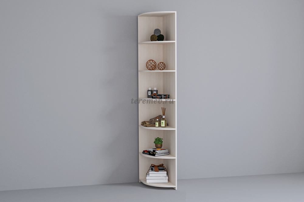 Описание: Стеллаж угловой с открытыми полками "Кэт-6" входит в модульный спальный гарнитур "Кэт-6" и расширяет функционал распашных шкафов, выполненных с ним в едином дизайне и цветовой гамме.