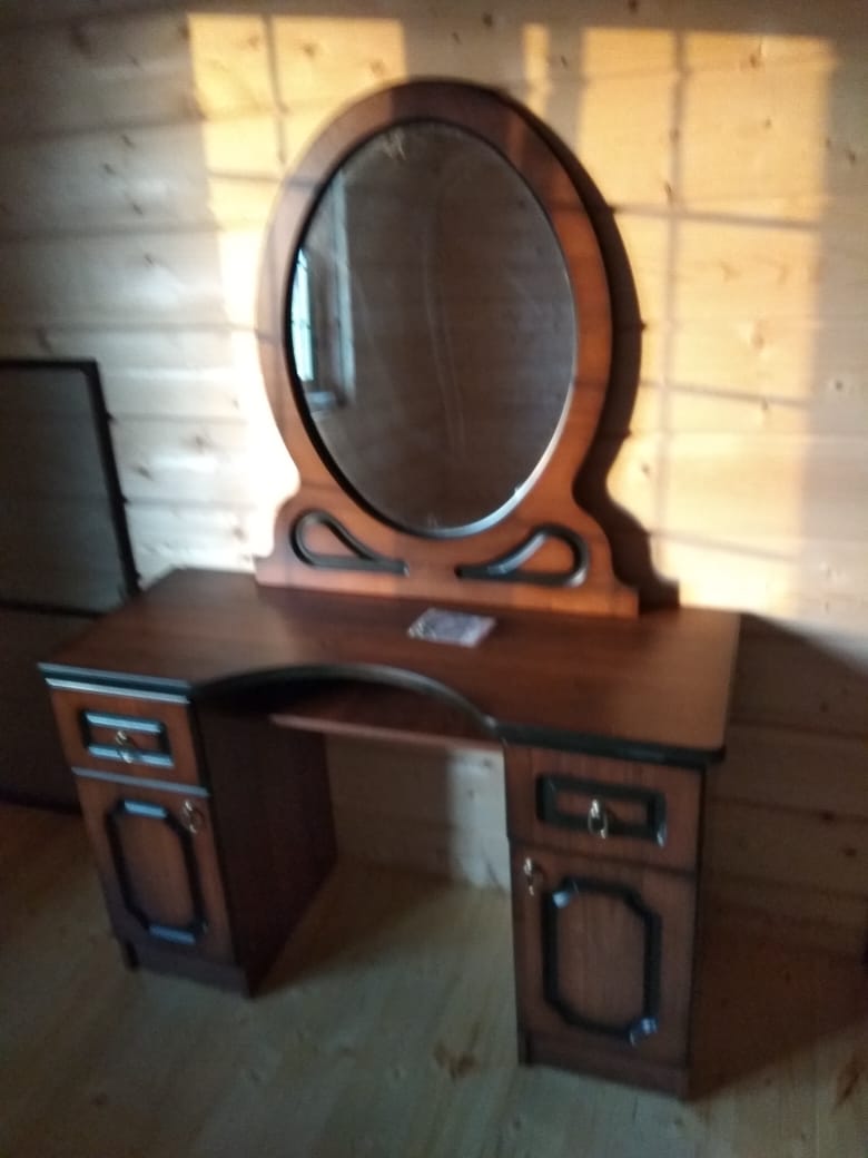 Приобрели туалетный стол Кэт-2 Эвита в спальню для дачи. Остались очень приятные впечатления от покупки. Выглядит стол очень долговечно и круто с точки зрения дизайна. Доставка произведена точно в заранее назначенное время, ребята всё занесли в выбранную нами комнату. Сборщик приехал на следующий день, собрал стол без проблем, надежно закрепил зеркало и качественно отрегулировал двери тумбы.