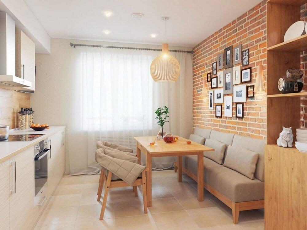 Конечно, не каждая кухня может позволить себе вместить диван, поэтому в первую очередь необходимо смотреть на габариты помещения и понимать, останется ли пространство для свободного перемещения между кухонными приборами и рабочими поверхностями.