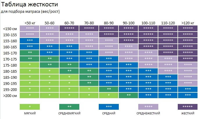 При выборе матраса можно столкнуться с такой градацией его жесткости: мягкий, среднемягкий, средний, среднежесткий, жесткий.