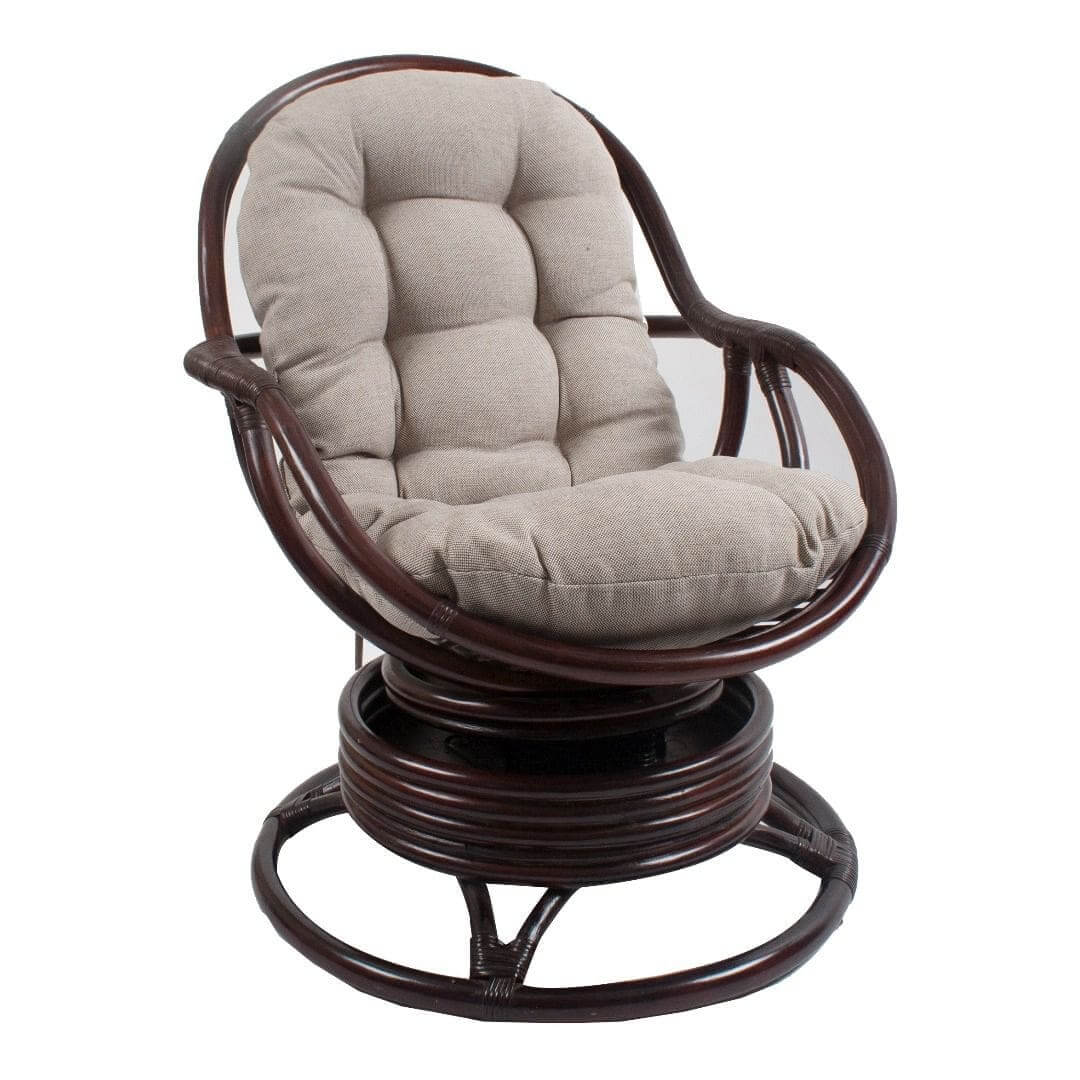 Плетеная модель из ротанга с ультрамягкой текстильной подушкой с ППУ наполнителем. Пружинный механизм кресла позволяет отклоняться на нем во все стороны, обеспечивает легкое качение. Максимально разрешенный вес 120 кг.